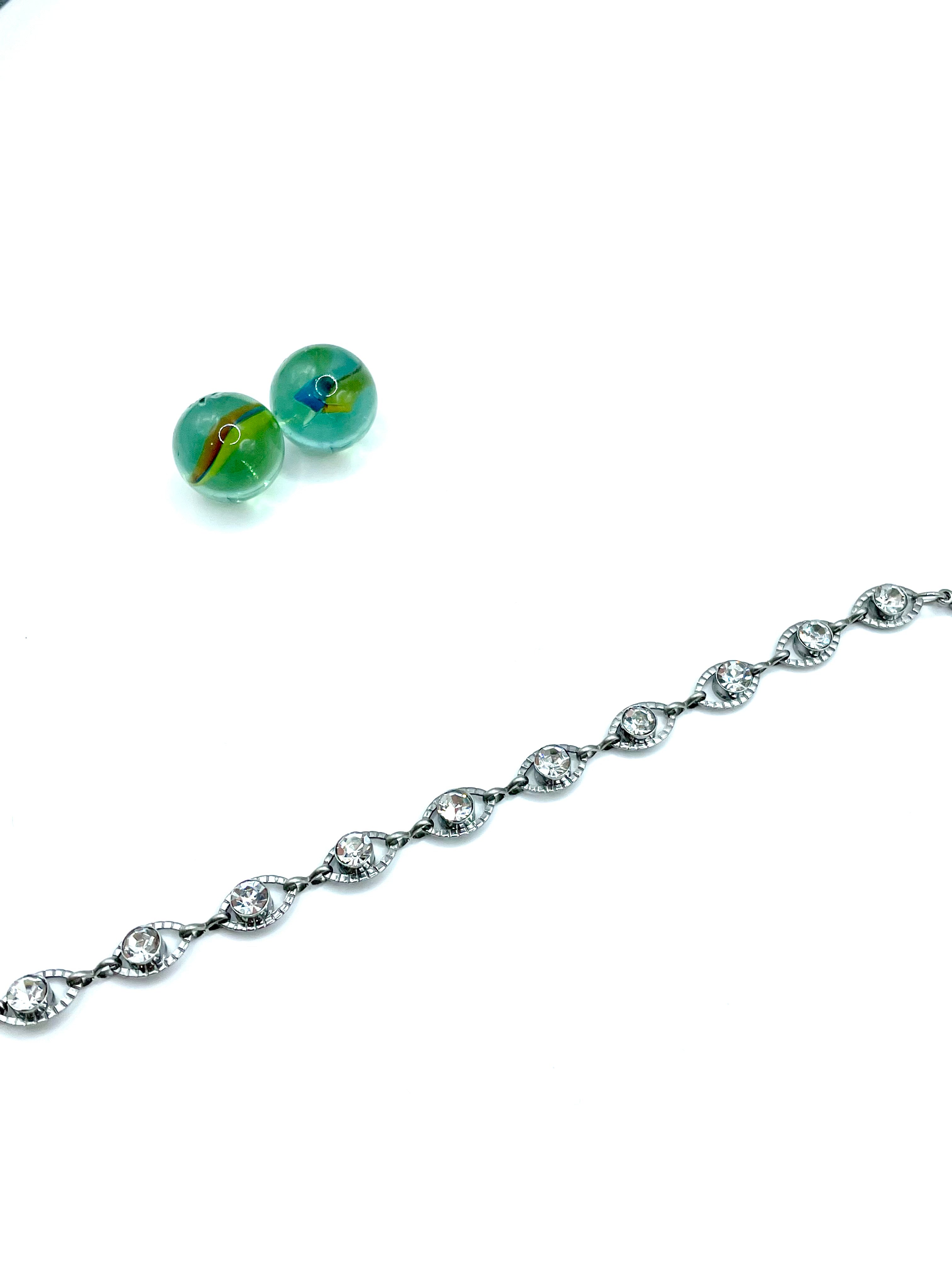 χειροποίητο βραχιόλι, από επάργυρη ατσάλινη αλυσίδα (stainless steel 316L ) σε σχέδιο ''ματάκια'' με λευκά κρύσταλλα .