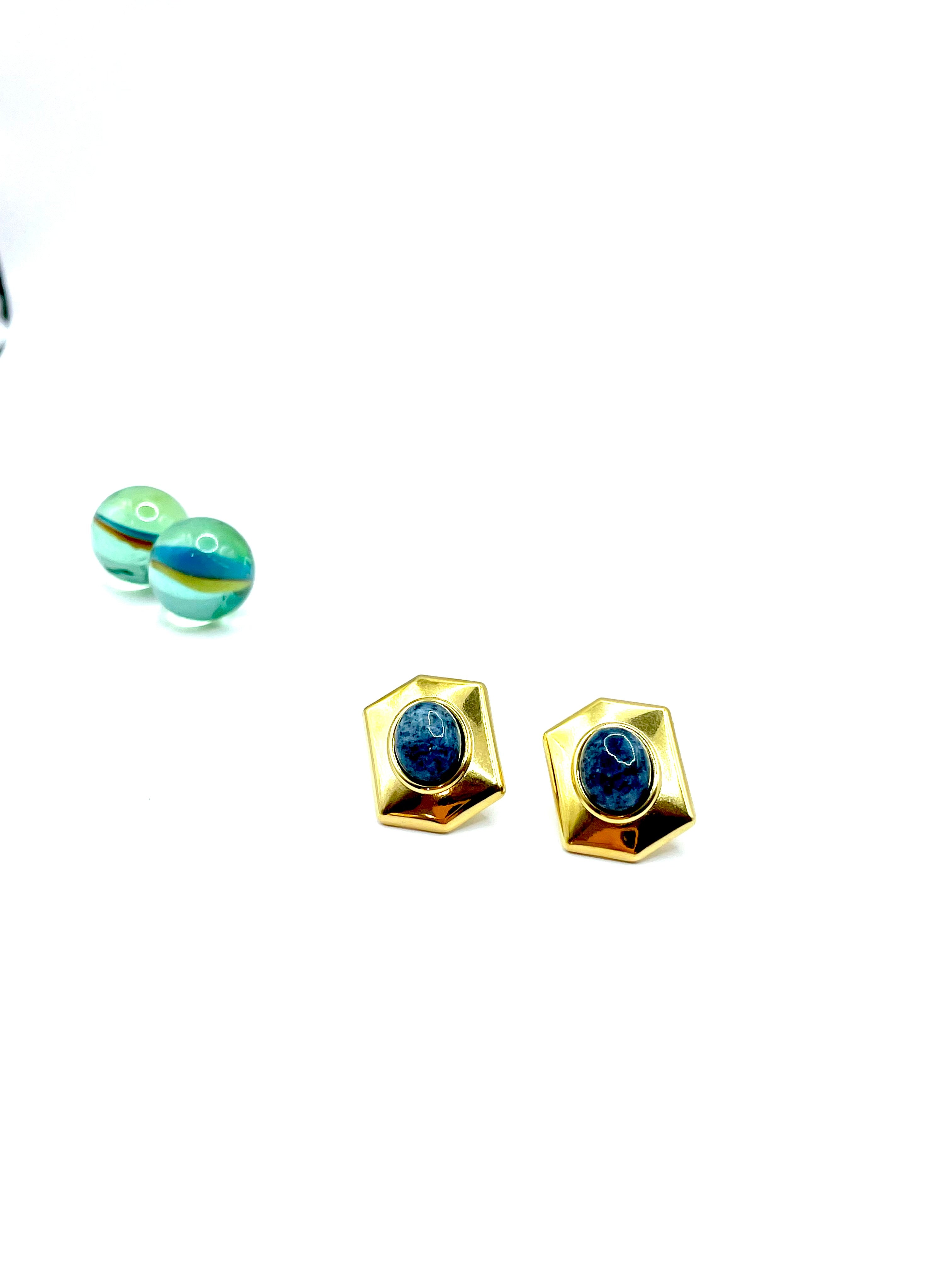 Καρφωτά σκουλαρίκια από υποαλλεργικό ανοξείδωτο ατσάλι (stainless steel), επιχρυσωμένα(18K) με οβάλ πέτρες lapis lazuli ,  σε vintage 80s ύφος.