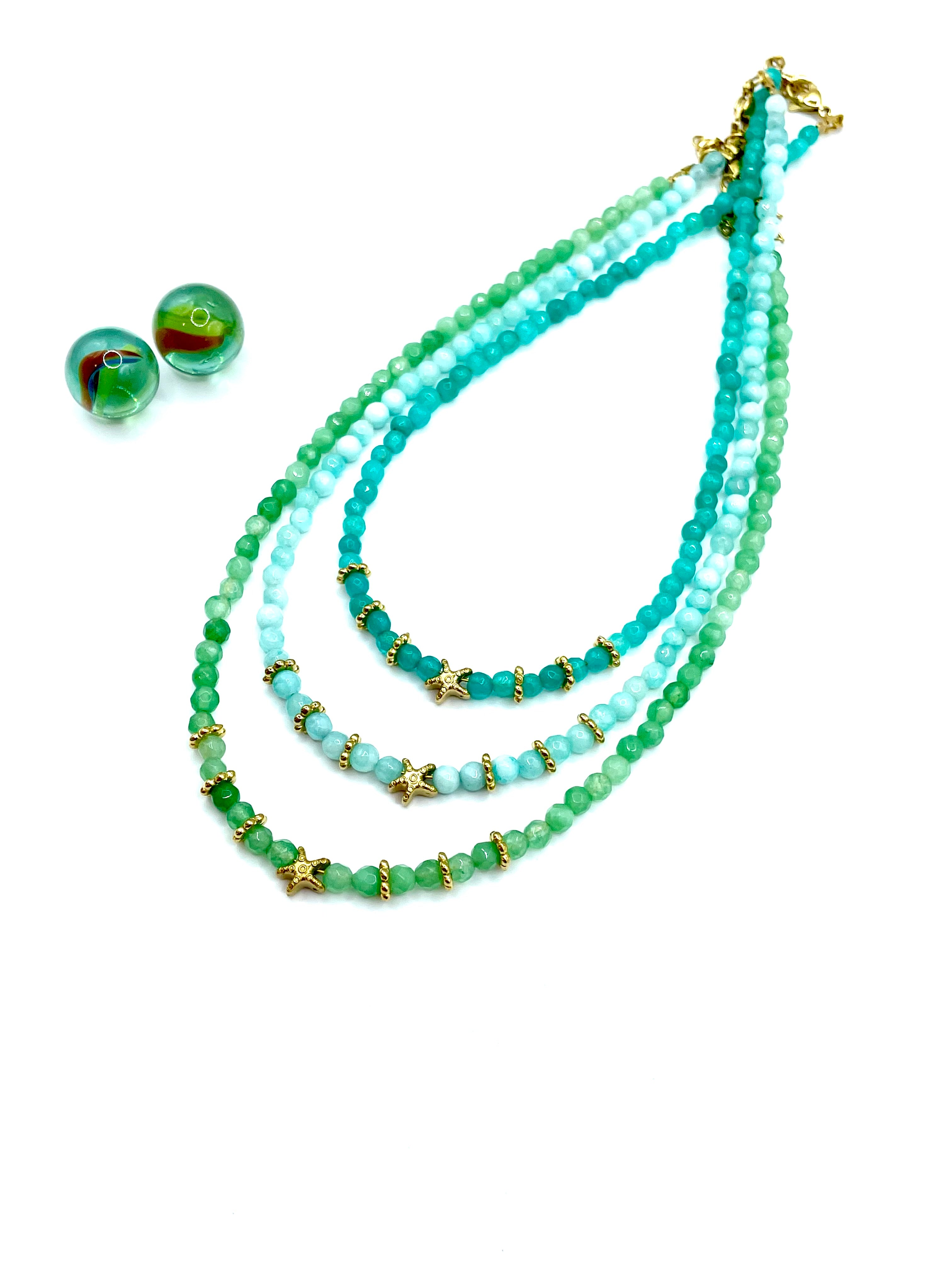 χειροποίητο κολιέ από ορυκτούς λίθους νεφρίτη (jade) σε 10 διαφορετικά χρώματα & ατσάλινο μικρό μικρό ''αστερία'' επιχρυσωμένο 18Κ ( stainless steel ) .
