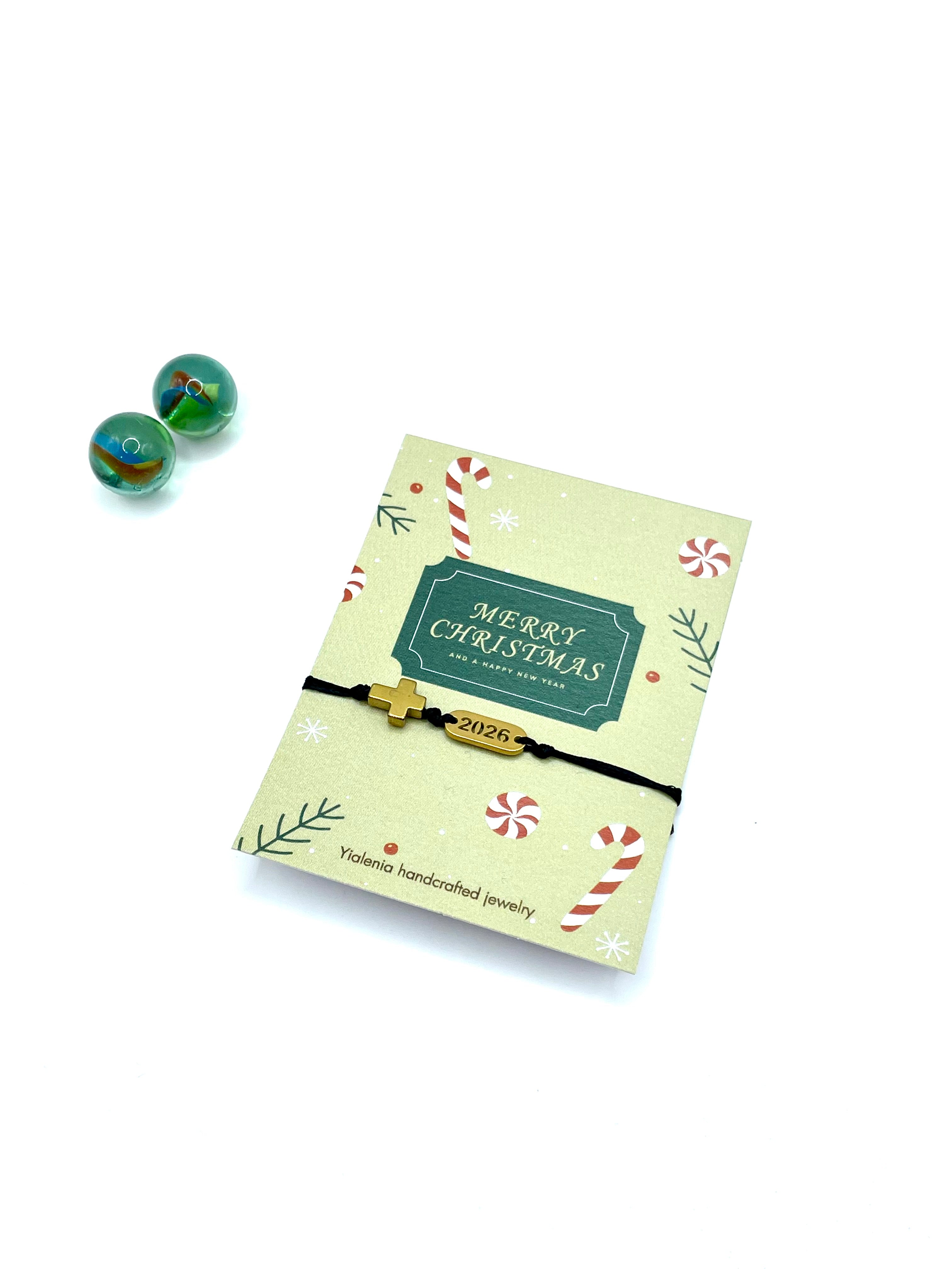 unisex χειροποίητο βραχιόλι / γουράκι για το 2026 , από μαύρο κερωμένο κορδόνι , ατσάλινο στοιχείο ''2026'' (stainless steel) και μικρό σταυρουδάκι από αιματίτη (hematite) .