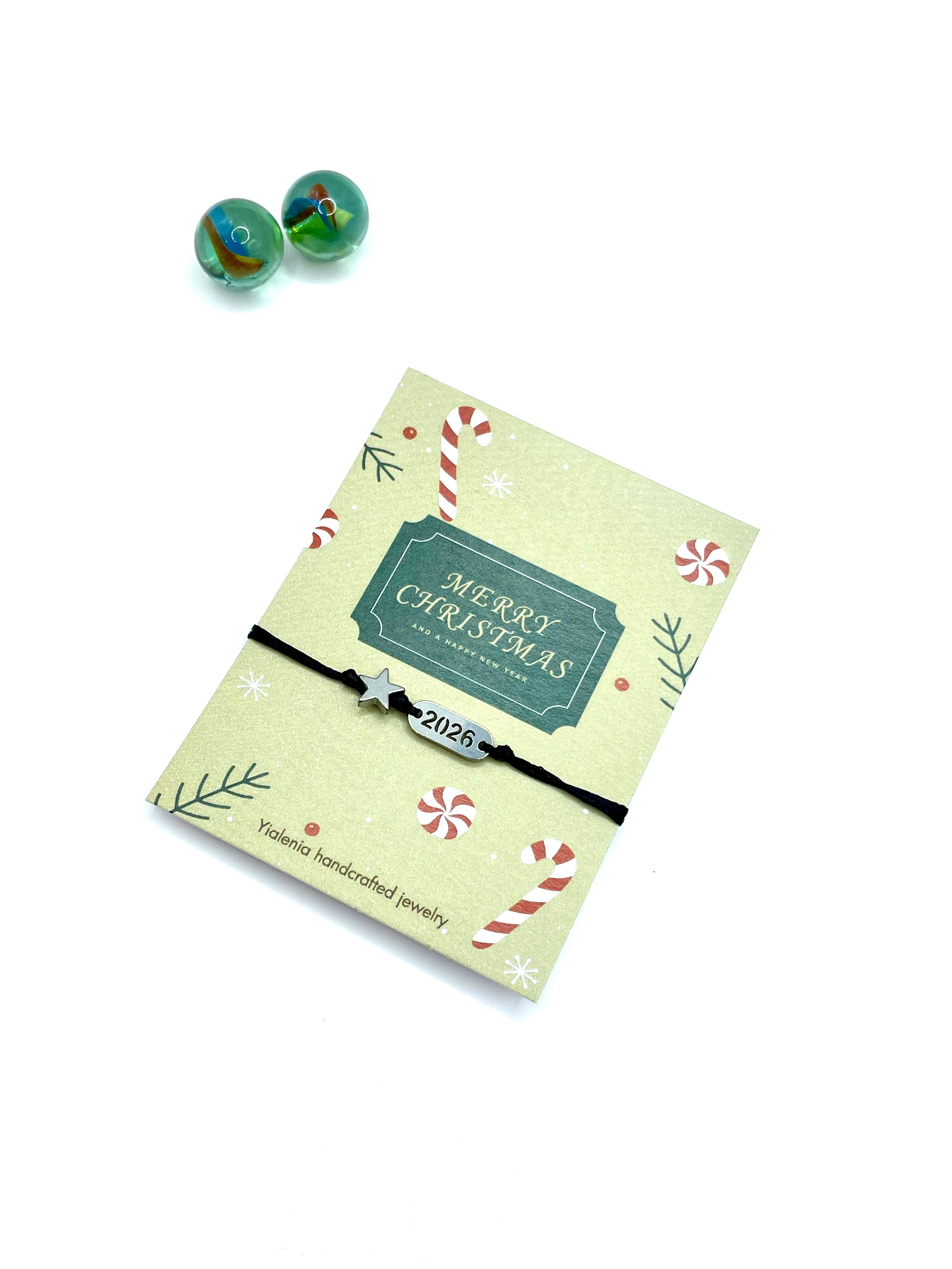 unisex χειροποίητο βραχιόλι / γουράκι για το 2026 , από μαύρο κερωμένο κορδόνι , ατσάλινο στοιχείο ''2026'' (stainless steel) και μικρό αστεράκι από αιματίτη (hematite) .